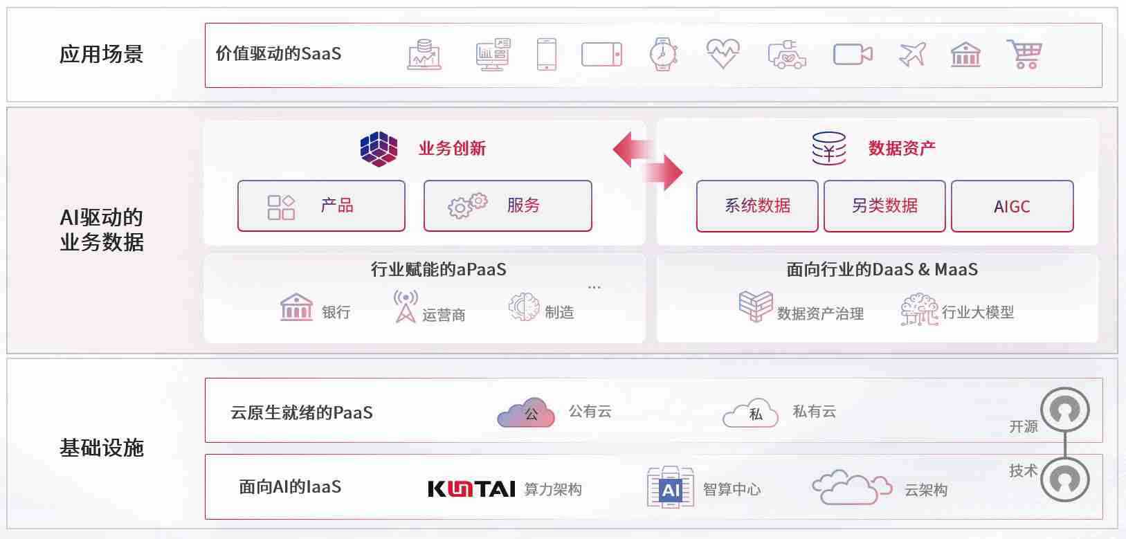 数字时代,,,,围绕企业数字化转型的关键要素,,有钱钱包数码开创性的提出数云融合战略和技术体系框架,,,着力在云原生、、、、数字原生、、AI原生和信创产业上架构产品和服务能力,,,,为处在不同数字化转型阶段的快消零售、、汽车、、金融、、医疗、、政企、、、教育、、、、运营商等行业客户提供泛在的敏捷IT能力和融合的数据驱动能力,,,,构建跨界融合创新的数字业务场景和新业务模式,,,助力企业级客户建立面向未来的核心能力和竞争优势,,全面推动社会的数字化、、智能化转型升级。。。